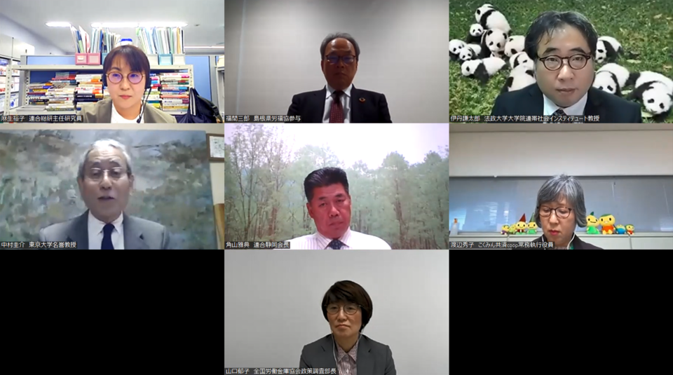 11月27日、連合総研・中央労福協・教育文化協会の共催により、シンポジウム「共に支え合う連帯社会の構築をめざして」をオンラインにて開催しました。労働組合、労福協、労働者自主福祉事業団体などから約180名の参加をいただきました。